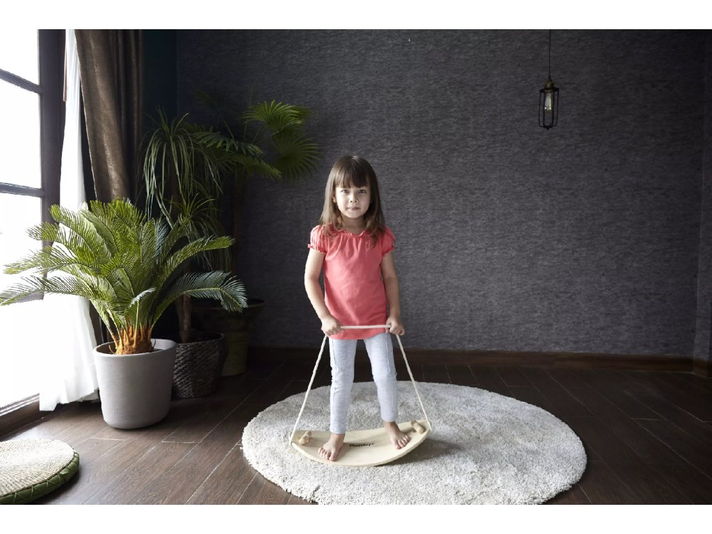 Играчка, предназначена да открива различни начини за поддържане на равновесие. С помощта на заоблена дъска и прикрепено въже помага на децата да поддържат равновесие в изправено, седнало положение и при люлеене.