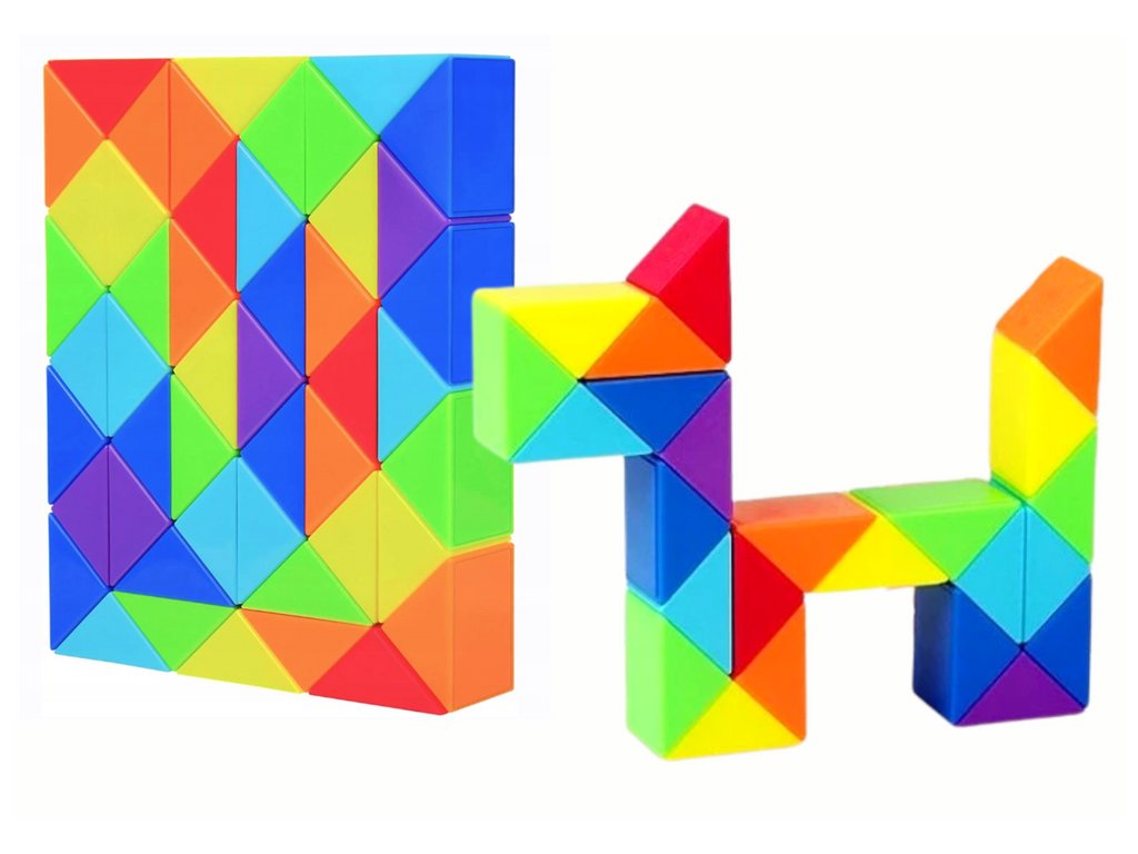 Представяме ви магическото кубче змия – играчка, изключителна по много начини. Кубчето, съставено от множество триъгълни елементи, дава неограничени възможности на децата да създават разнообразни форми и структури. Въвежда ги във вълнуващия свят на конструирането, развива творческото мислене и фината моторика.