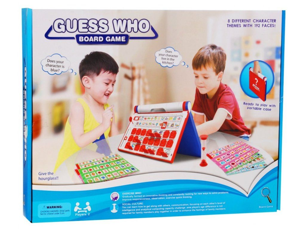 Логическа игра - Познай кой е това? е забавна социална игра за деца, с която ще се забавляват много. Децата трябва да използват логическо мислене и да влязат за миг в ролята на детектив. Чрез играта те се учат как правилно да задават и формулират въпроси. Също така децата усвояват нови английски думи, които са илюстрирани с картинки. Играта е предназначена за 2 играчи. Подходяща е за деца от 3 години и притежава европейски сертификат за безопасност.