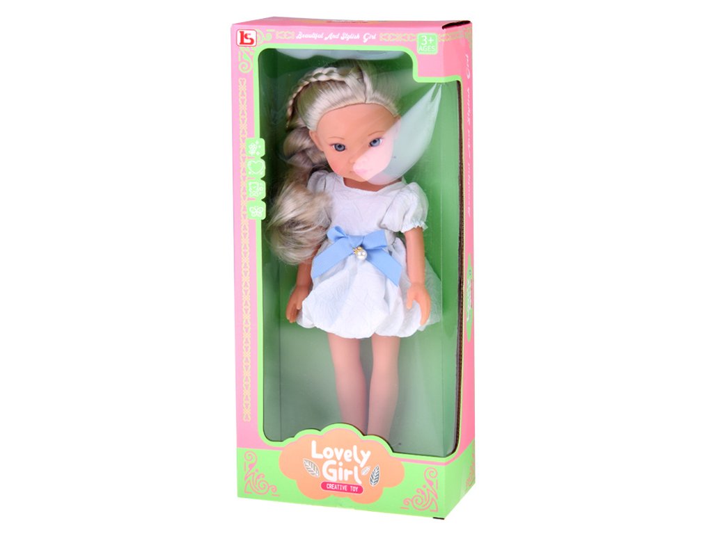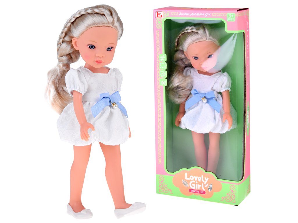 Lovely Girl Сладка кукла в бяла рокля със синя панделка 33 см