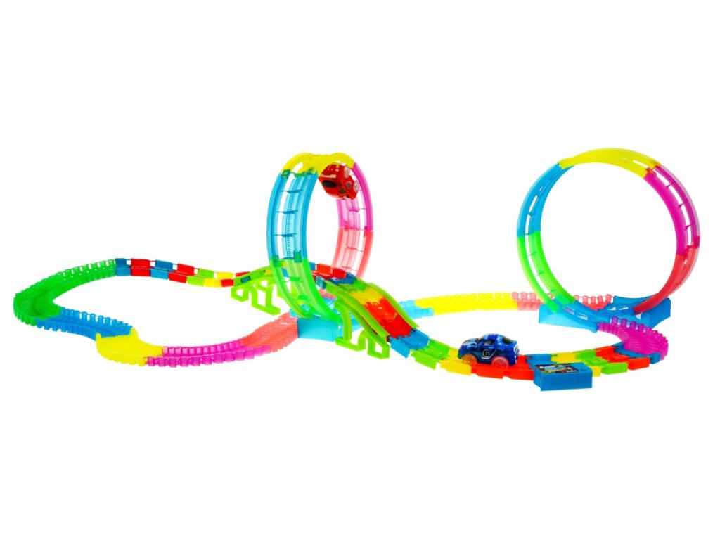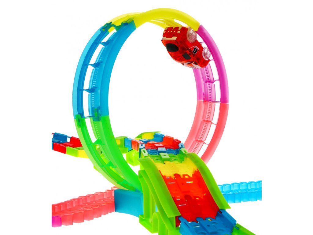 Magic Tracks светеща количкова писта 166 части осигурява много забавление на всяко дете. Пистата може да бъде подредена по собствен дизайн и идея. Елементите на комплекта се сглобяват и разглобяват лесно, което улеснява детето при монтажа. Количката е със светлинни ефекти и вграден музикален панел.