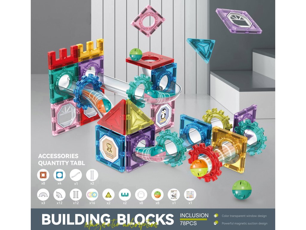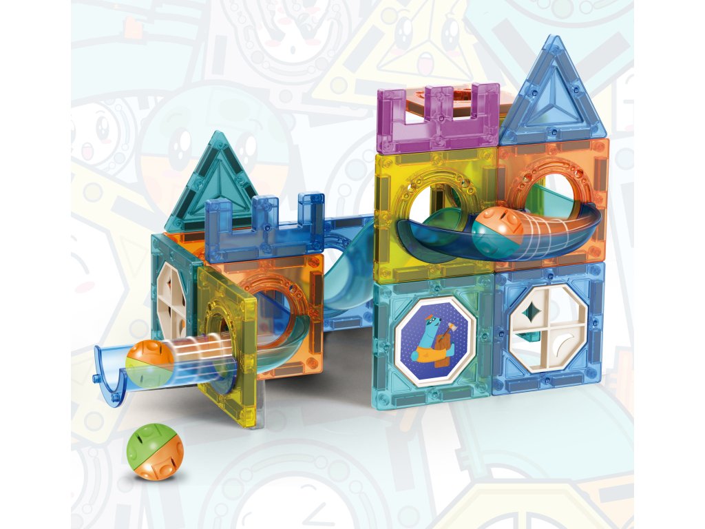 - 132 цветни магнитни елемента: Разнообразни форми и цветове, които позволяват създаването на безброй конструкции.