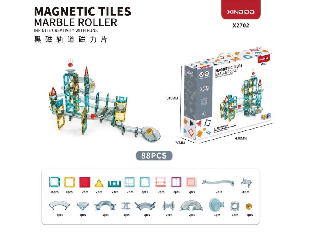 Цветна, здрава магнитна писта с топчета за деца над 3 години. Забавно е да сглобите конструкцията на пистата и след това да пуснете топчетата да преминават през тунели. Можете да следвате илюстрираната инструкция, включена в комплекта, или да създадете собствена кула. Пускането на топчетата и наблюдаването как преминават през усуканите тунели е много забавно и успокояващо. Играта стимулира развитието на креативност, въображение и сръчност. В комплекта са включени 4 топчета.