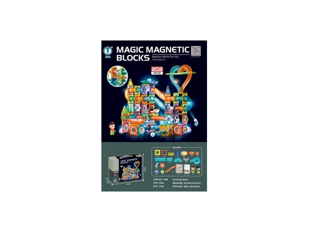 Магнитните блокчета са отлична образователна играчка, която развива детската креативност, учи на търпение и концентрация. В брошурата, включена в комплекта, са показани варианти за изграждане на пистата. Някои елементи имат вградена светлина, която прави играчката по-увлекателна и атрактивна.