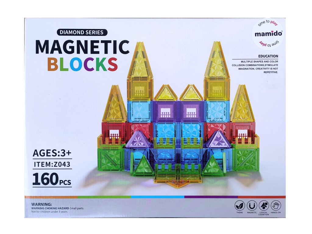 Открийте безкрайни възможности за създаване с магнитния конструктор от 160 части. Цветните прозрачни кубчета с диамантена повърхност се свързват лесно благодарение на силните магнити и позволяват изграждането на високи замъци, мостове, кули и превозни средства. Децата развиват креативност, пространствено въображение и фина моторика по време на игра.