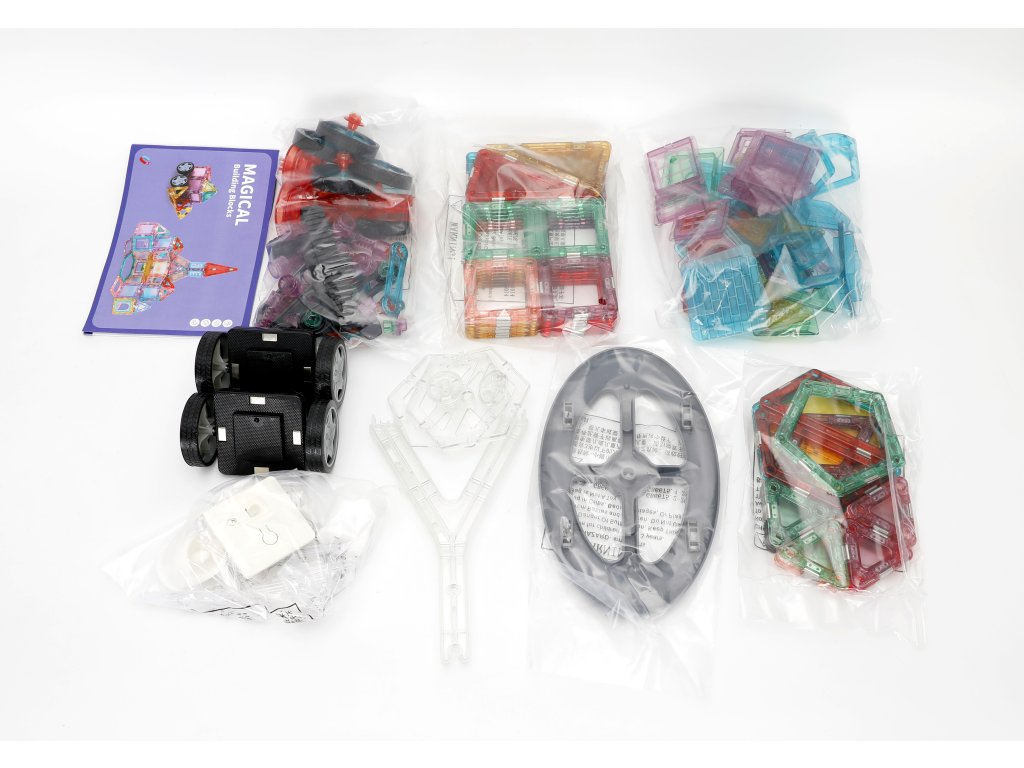 Отделните части се свързват лесно чрез силни магнити, така че дори малки деца могат да строят без сложна манипулация. Играчката подпомага логическото мислене, фината моторика и пространственото въображение и е идеална за самостоятелна игра, както и за съвместно творчество с родители.