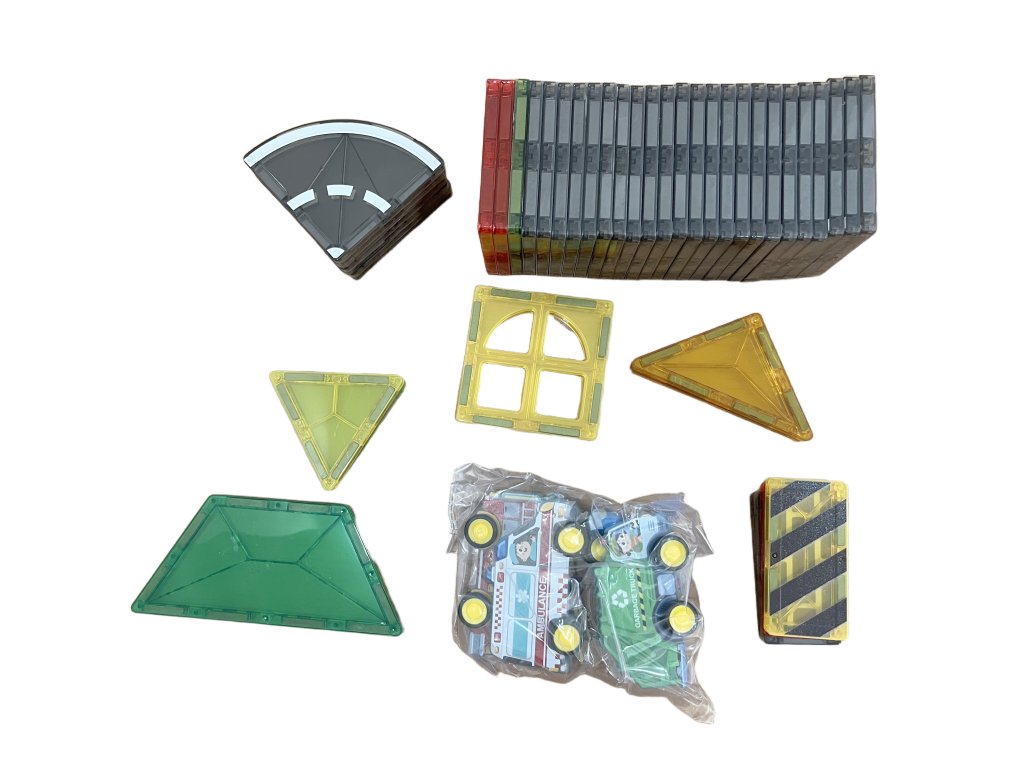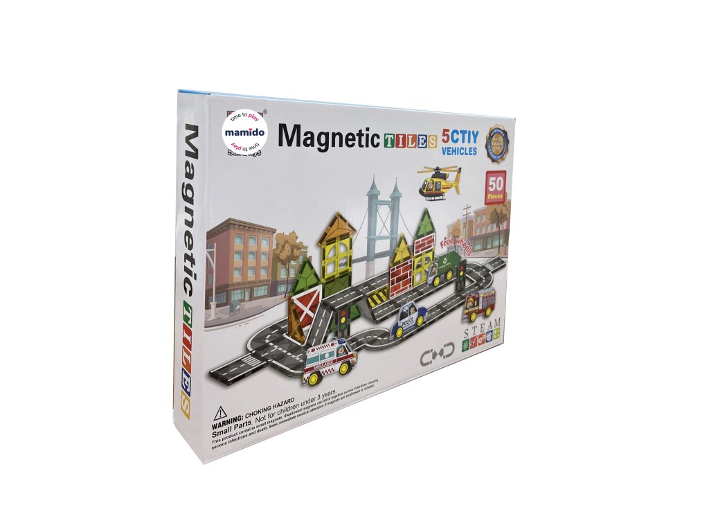 Креативен магнитен конструктор с големи 7,5 см елементи дава възможност на децата да построят собствен град, пълен с къщи, мостове, кули и пътища. Градската серия съдържа 50 цветни магнитни елемента с различни форми, заедно с малки превозни средства, които придават на конструкциите жив и игрив характер. Силните магнити осигуряват стабилност на конструкциите и позволяват на децата да измислят все нови идеи.