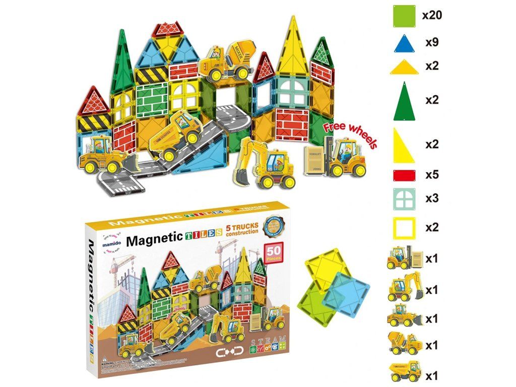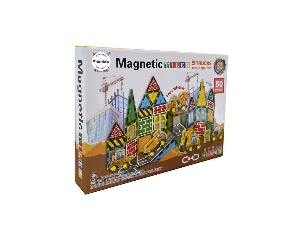 Магнитна строителна играчка град 50 части, 5x строителни превозни средства MT1446