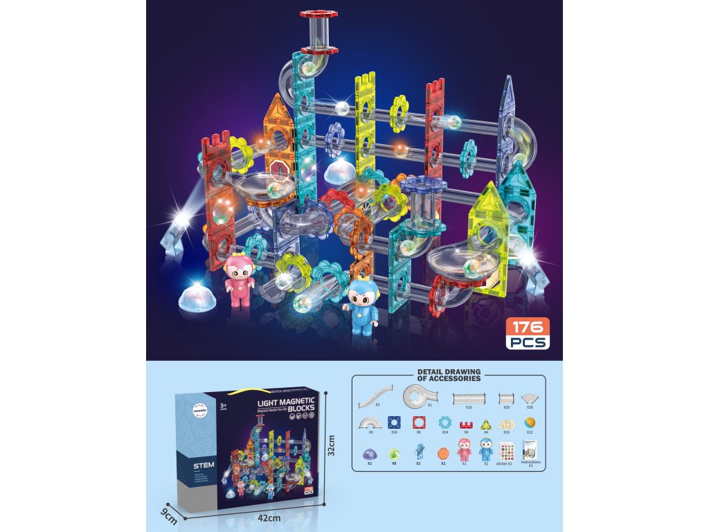 Магнитна светеща конструкторска писта с топчета 176 части XL