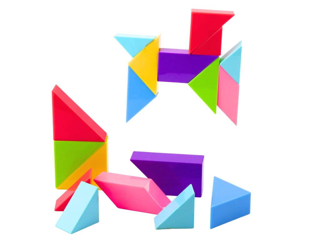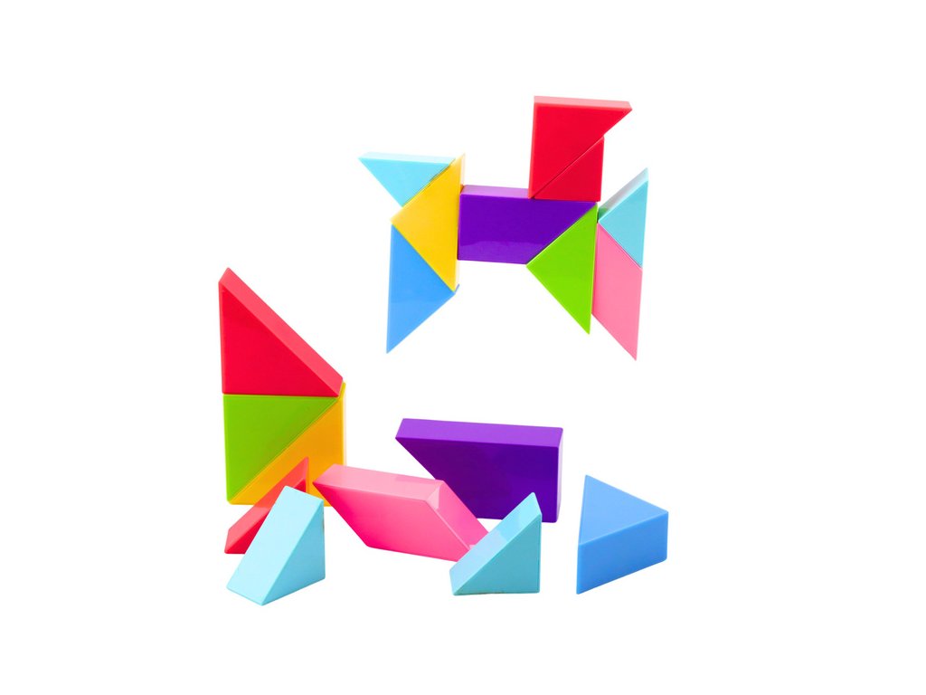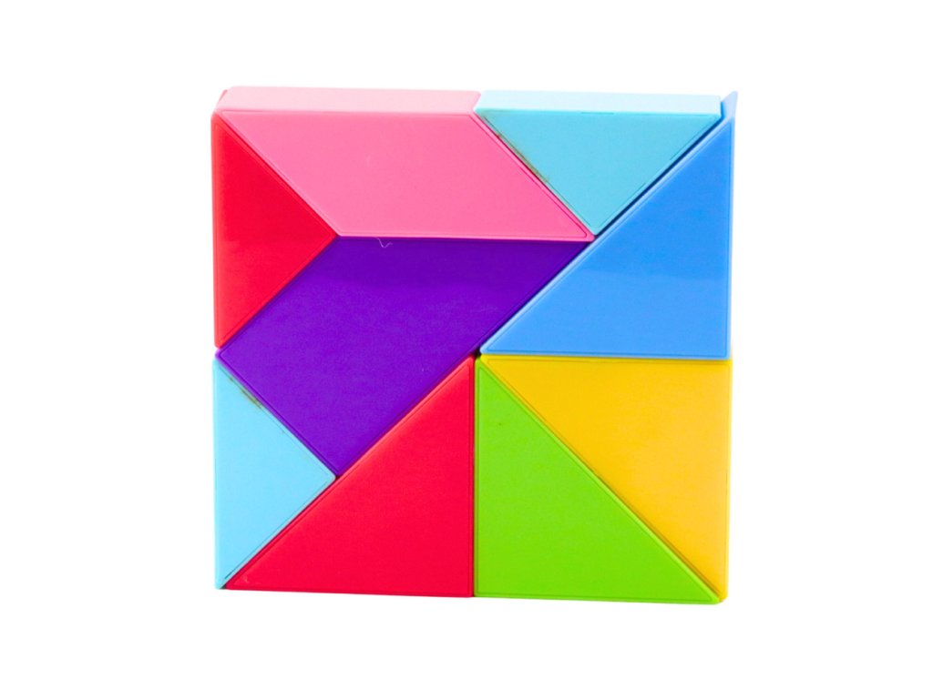 Благодарение на включените инструкции, детето може да използва готови примери за пъзели, а стикерите с усмивки позволяват да се придаде весел щрих на кубчетата. Танграмът е не само забавен, но и образователен - упражнява концентрацията, логическото мислене, координацията око-ръка и учи на търпение.