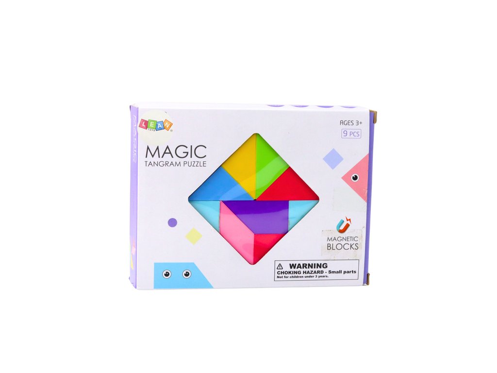Магнитните кубчета Tangram са креативна образователна играчка, която стимулира въображението и развива ръчните умения. Комплектът включва 9 цветни части, които могат да бъдат свързани в различни шарки и форми, за да се създават уникални композиции. Благодарение на силните магнити, конструкциите са стабилни и лесни за сглобяване, което насърчава дълга игра и експериментиране.