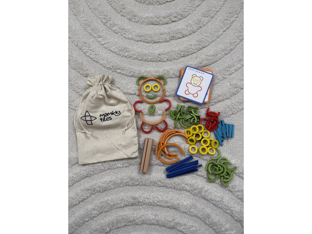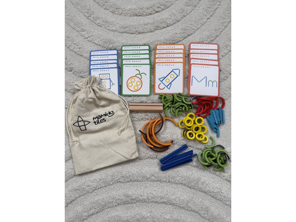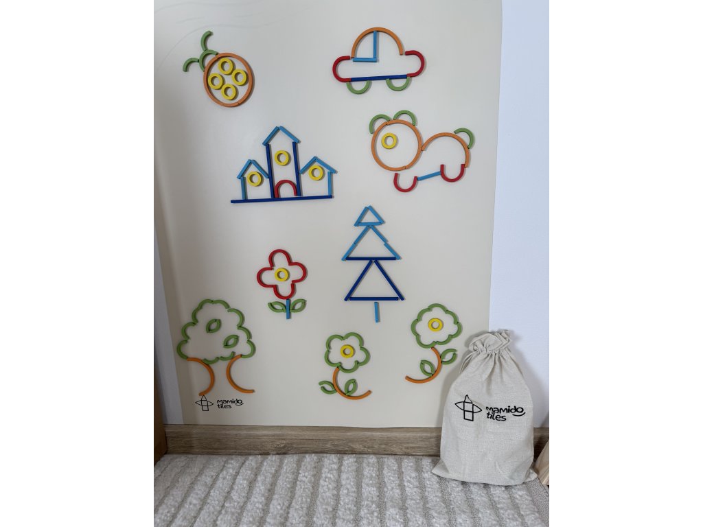 Открийте безкрайните възможности за творчество с Mamido Tiles Magic Bag – креативен комплект от магнитни форми, който незабавно ще потопи децата в свят на въображение, цветове и логическо сглобяване. В практична текстилна торбичка ще намерите цветни магнитни елементи с различни форми и размери, от които могат да се сглобяват както прости картинки, така и сложни мотиви.
