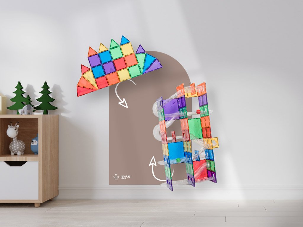 Магнитният тапет Mamido Плочки ще донесе на децата още повече забавление, творчество и учене благодарение на магнитната сила и лесната инсталация. Просто го залепете на гладка стена и за миг ще се създаде интерактивно пространство за магнити, рисуване с тебешир, рисуване с миещи се бои и писане с маркер за бяла дъска.