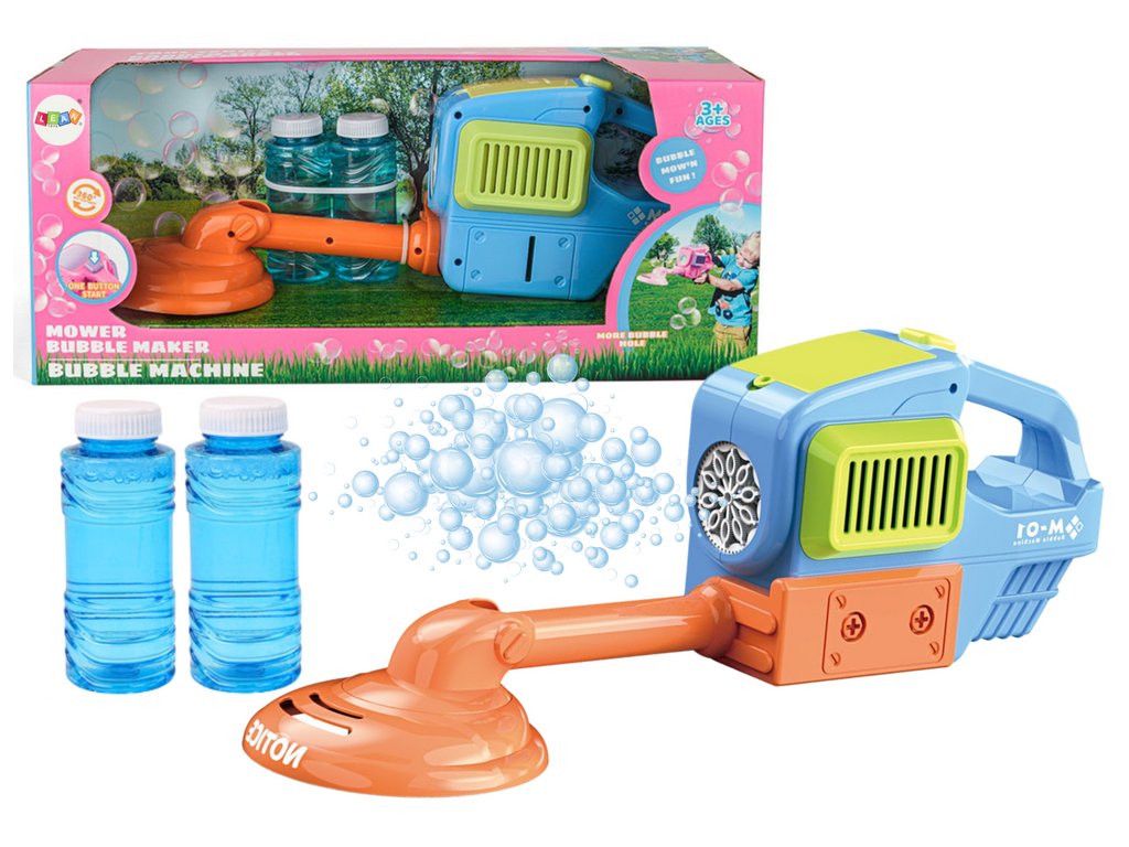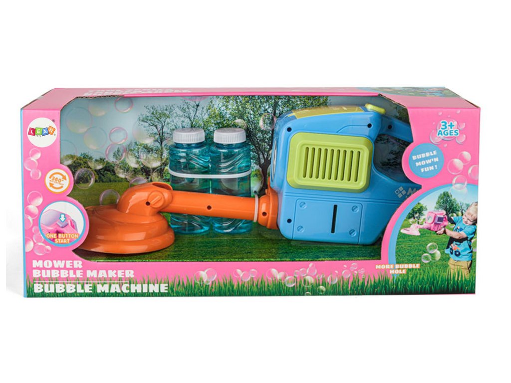 Тази играчка е проектирана в атрактивен син цвят, който е любим сред децата. Благодарение на вградения генератор за сапунени балони, предният ротор на косачката излъчва цветни балони. Тези впечатляващи визуални ефекти правят играта още по-вълнуваща и забавна.