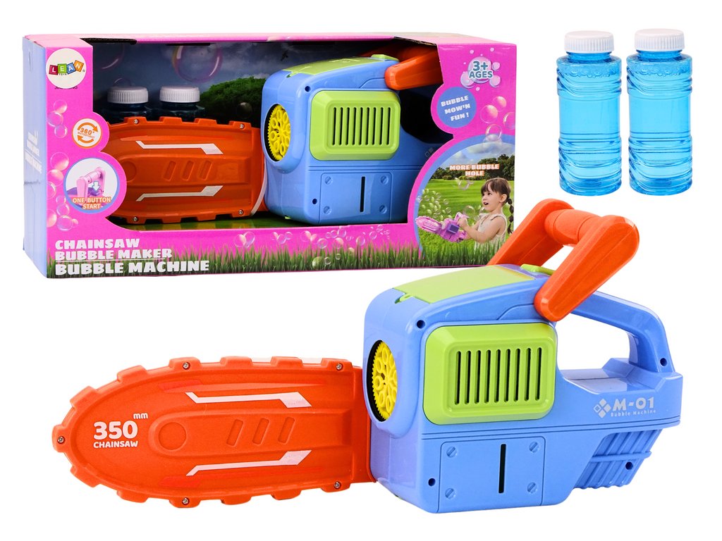 Машина за сапунени мехурчета с форма на моторен трион, макар и на пръв поглед необичайна комбинация, предлага на децата невероятно приключение в света на креативната забава. Неговият уникален дизайн в синьо с оранжеви и зелени елементи веднага привлича вниманието на малките деца, стимулирайки ги да изследват и откриват възможностите, които тази нетипична играчка крие.