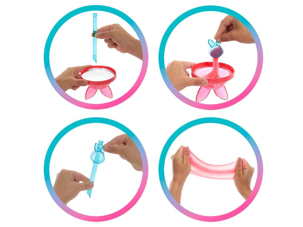 Комплектът е опакован в цветна чаша, вдъхновена от плодов шейк, чийто капак е украсен с характерни заешки уши. Вътре ви очакват до 8 тематични изненади. Забавлението започва с отвиване на капака – под него се намира блестящ Slime, мек, еластичен и идеален за сетивно откриване.