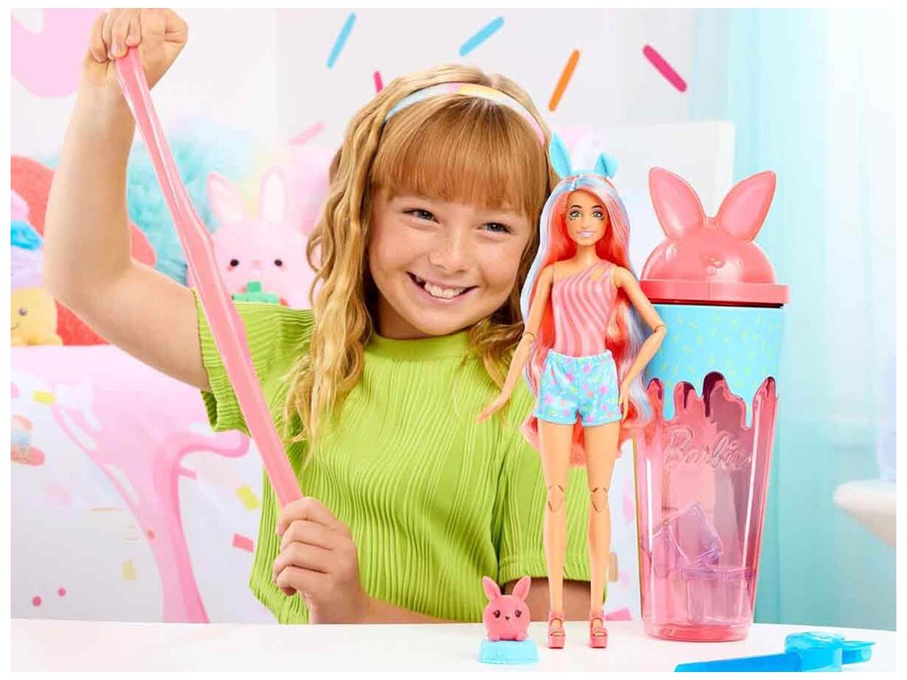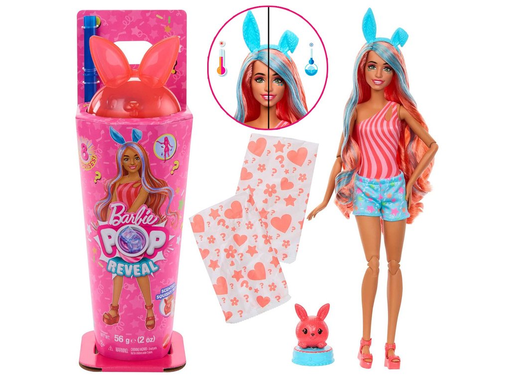 Влезте в света на сензорните игри и сладките изненади с Barbie® Pop Reveal от серията Shakes – този път във версия със зайче! Това е необичайна версия на класическа играчка, която съчетава магията на разопаковането с креативен стил и изненадващи елементи.