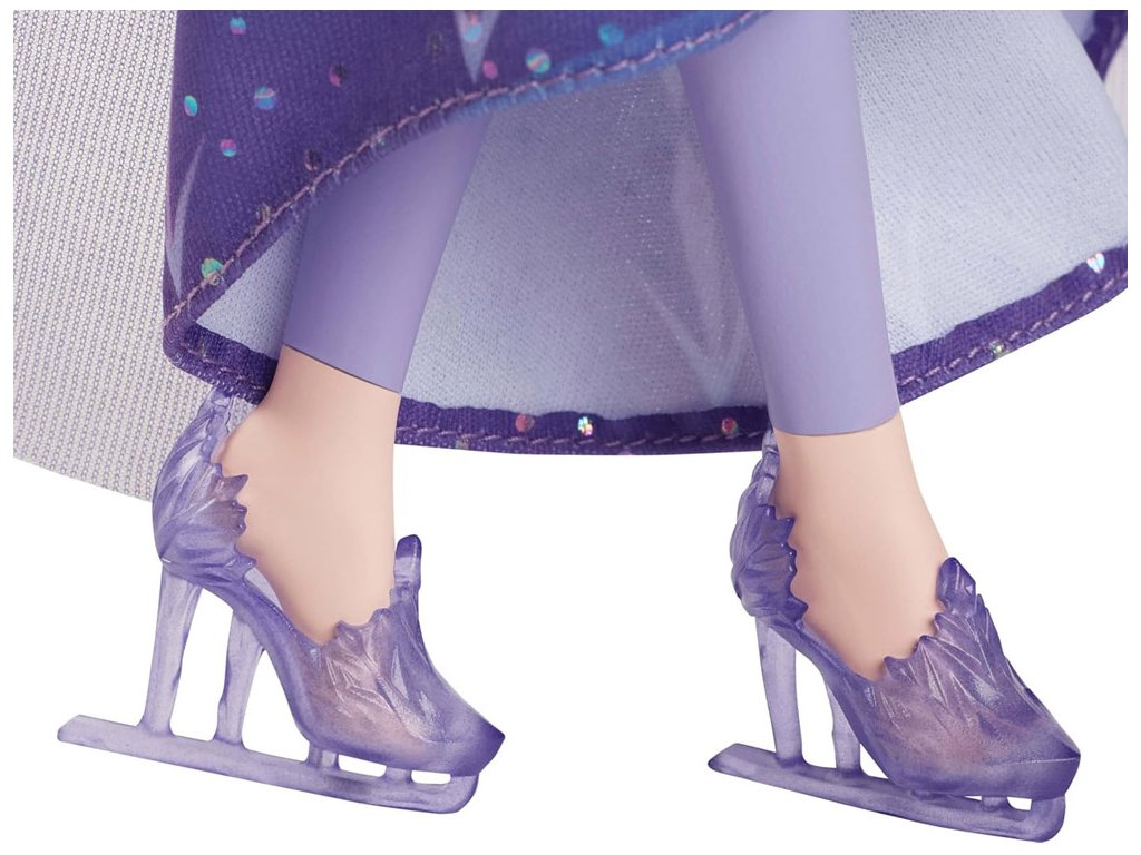 Elsa е облечена в елегантен, блестящ костюм, вдъхновен от зимния пейзаж и блясъка на вечерния сняг. Нейната подвижна рокля и съответстващите кънки са идеални за зимната атмосфера на забавление на пързалката.