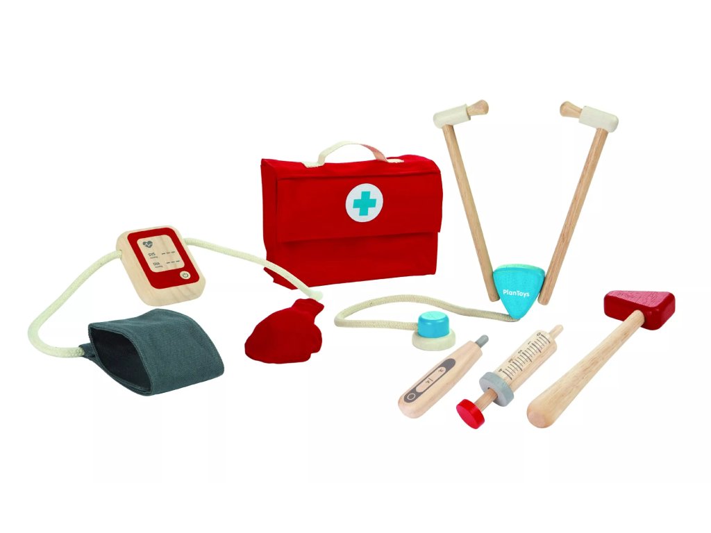 Ръчният докторски куфар от Plan Toys е предназначен за детски игри на лекари. Съдържа основни инструменти, които позволяват на децата да се грижат за своите приятели и да упражняват социални умения.