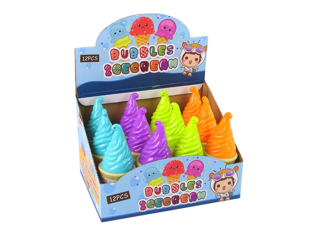 Мехурчест разтвор сладолед е идеален за специални събития или игри на двора с приятели. Контейнерът е оформен като сладолед. Течността вътре е безцветна, просто извадете пръчката, духнете или нежно я прокарайте и ще се образуват цветни мехурчета.