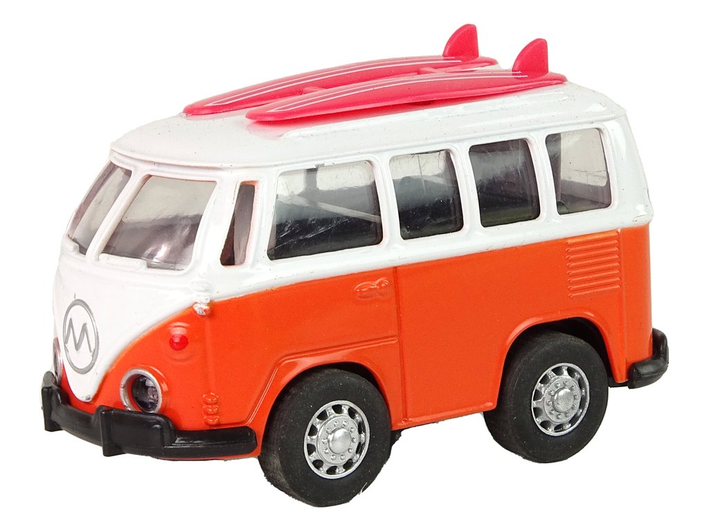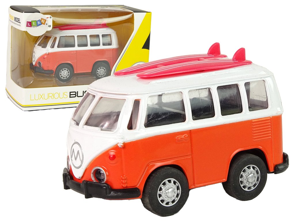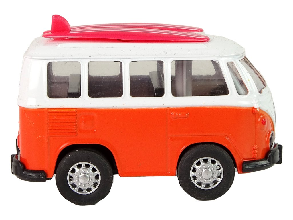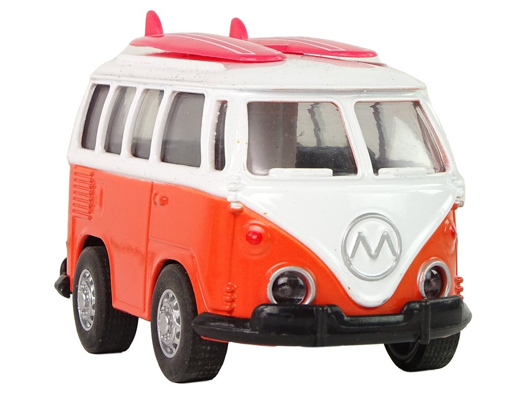 Метален туристически автобус е изработен от метал с пластмасова рамка. Разполага с гумирани колела и интериор, който наподобява истински автобус. Металният модел на класическо превозно средство е прецизно възпроизведен, което го прави изключително реалистичен.