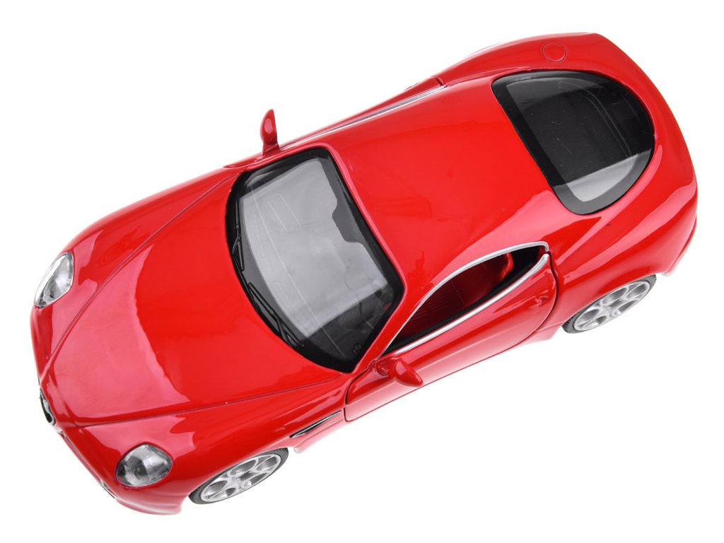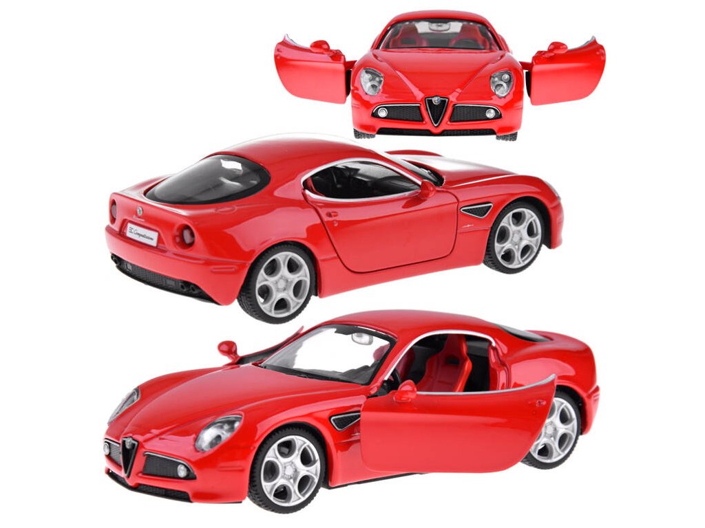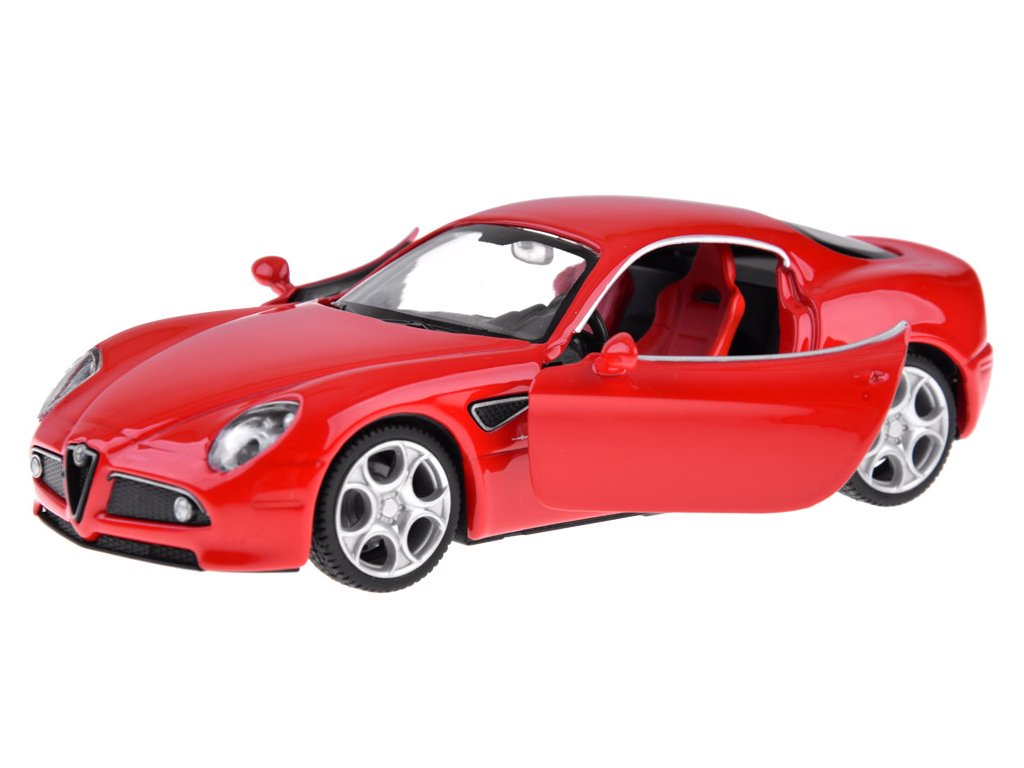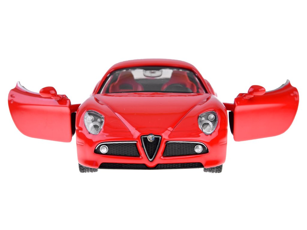 При отваряне на вратите на Alfa Romeo 8C ще чуете звук на сирена и клаксон. Когато натискате колата напред, ще чуете звук на стартиране и работа на двигателя. Тези звукови ефекти се допълват от предни и задни светлини, както и осветен табло. Моделът има метално купе, гуми от каучук и пластмасова рамка.