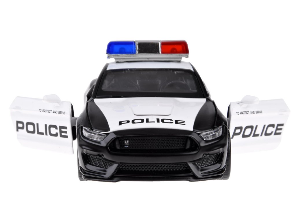 Метално полицейско автомобилче Ford Mustang Shelby GT350 1:32 е отлична добавка към всяка колекция от автомобилни модели. Това полицейско превозно средство е изработено с внимание към всеки детайл и привлича вниманието на всеки малък любител на автомобили. Количката разполага с отварящи се врати, светлинни и звукови ефекти. Ford Shelby е оборудван с фрикционен двигател, който осигурява плавно движение напред чрез натискане.