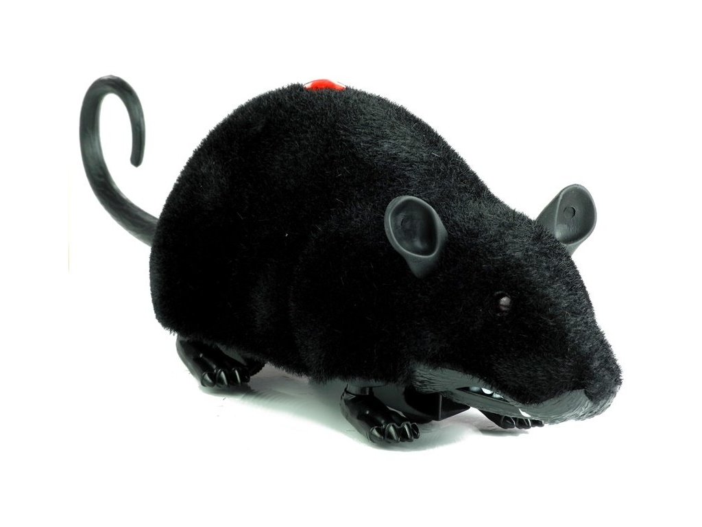 Мишка с дистанционно управление на колелца R/C черна е страхотна играчка, която вярно имитира истинско животно. Изработена е от устойчив пластмасов корпус и е покрита с мек материал, наподобяващ истинска козина. Мишката се движи лесно по гладки повърхности благодарение на колелцата си и се управлява с инфрачервено дистанционно управление. Може да се движи напред и назад, като при движение реалистично мърда крачетата и опашчето си. Идеална е за забавни шеги и игри вкъщи.