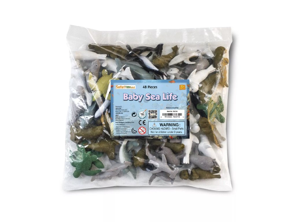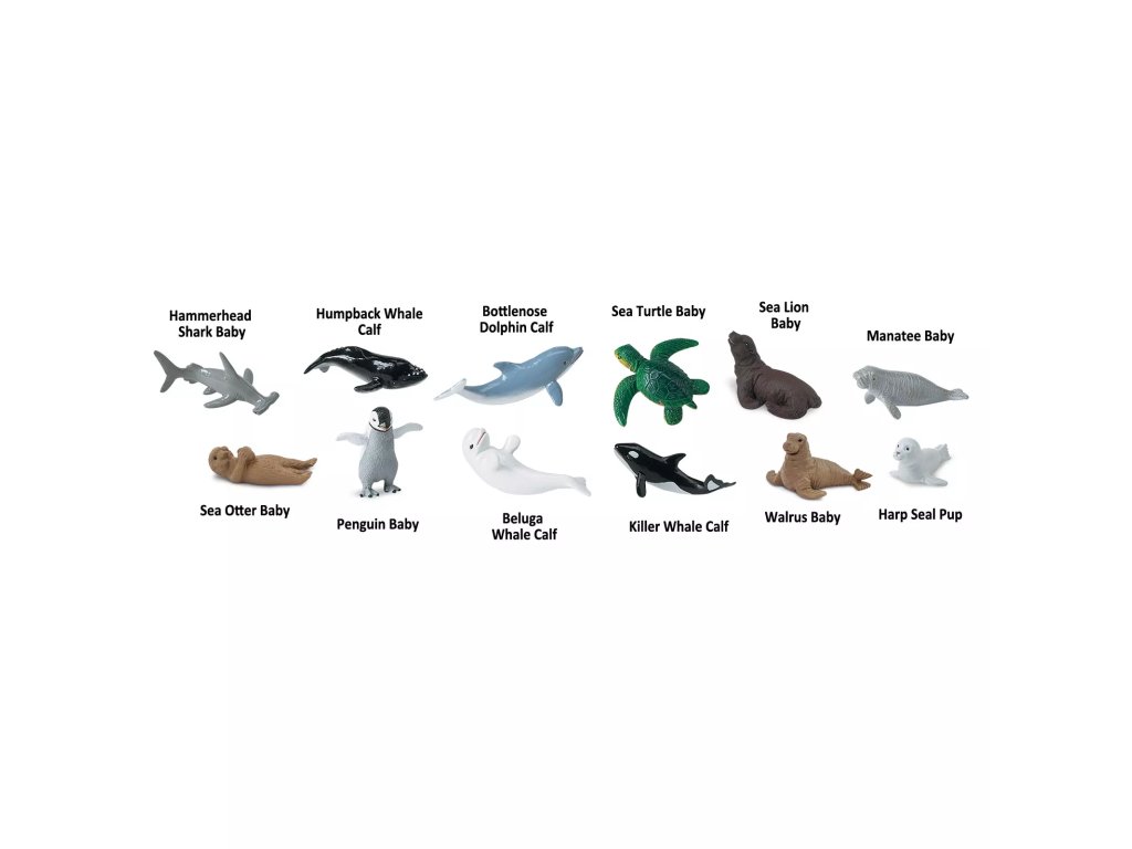 Ръчно рисуваните фигурки, изработени в детайли, помагат на детето да разпознае типичните характеристики на отделните видове морски животни. Работата с тях е атрактивна и поради факта, че са сладки малки. Имената на морските животни на английски обикновено са посочени на корема на фигурката.