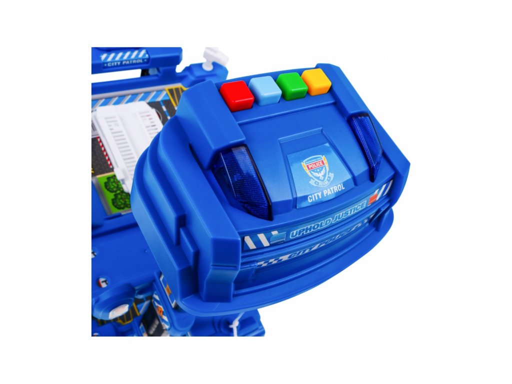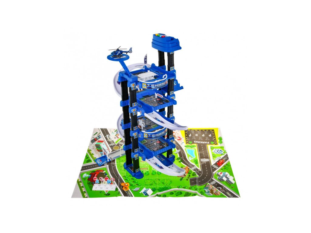 Многоетажният гараж разполага с пет етажа, до които количките се придвижват чрез асансьор или пързалка. Асансьорът е оборудван с мигащи светлини и звукови ефекти. На гаража има площадка за кацане на хеликоптер. В комплекта са включени две колички, хеликоптер, пътни знаци и игрална постелка с пътна мрежа.