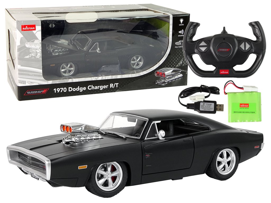 Модел кола с дистанционно управление R/C Dodge Charger 1:16 черен е идеален подарък за любителите на луксозни автомобили, както и страхотна играчка за деца и възрастни. Неговият реалистичен външен вид и множество детайли привличат вниманието от първия поглед. Светлините увеличават усещането за автентичност и позволяват каране дори на тъмно. Гумени гуми дават възможност на модела да се движи както по гладка повърхност, така и по неравен терен. Подвижни елементи са още една характеристика, която прави тази играчка изключителна.