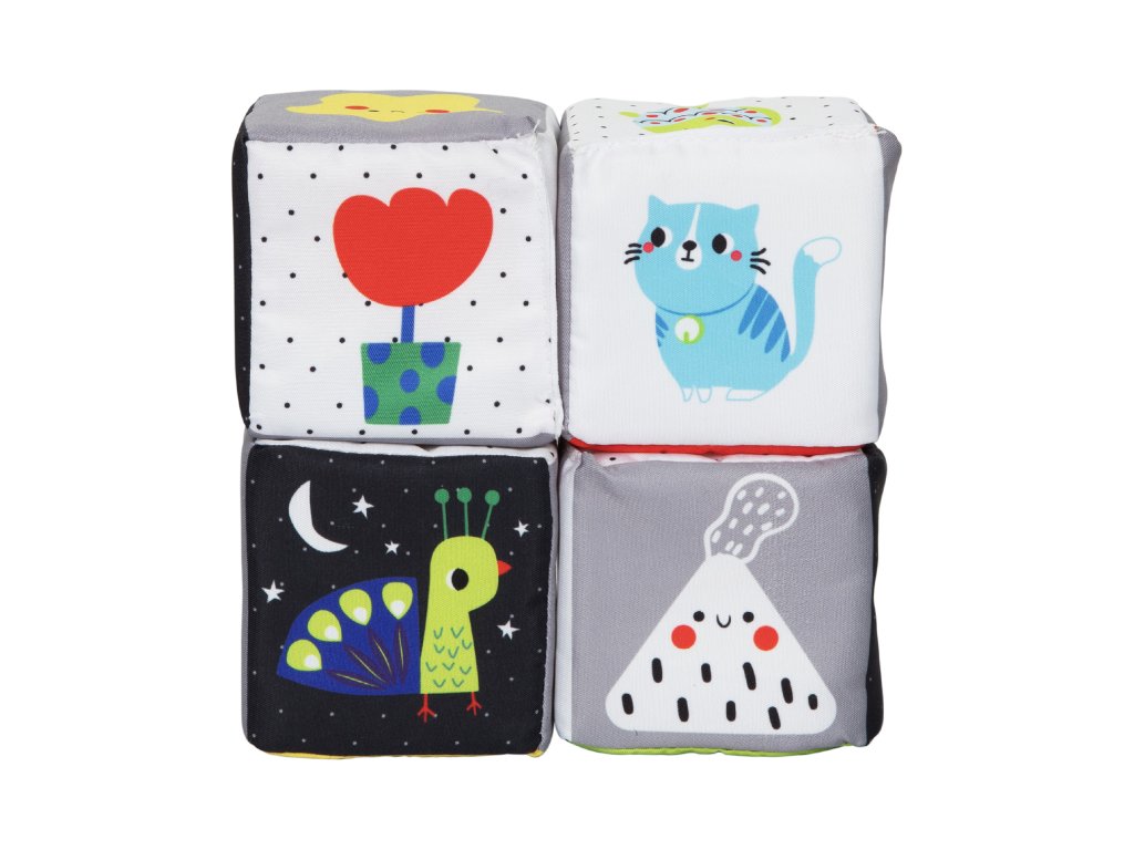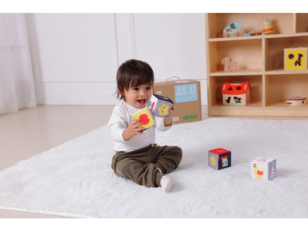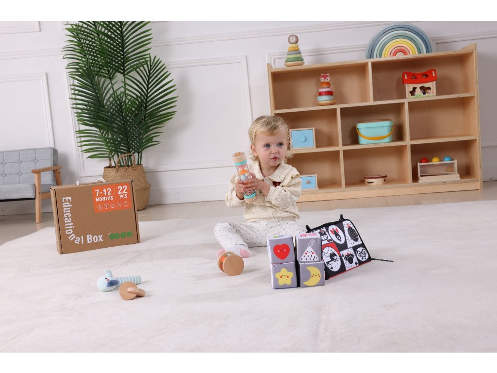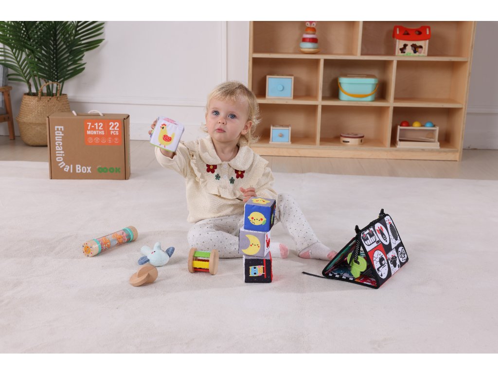 Монтесори кутия XXL 10 бр. Тактилни кубчета Огледало Музикални инструменти Сензорика 3-4 месеца