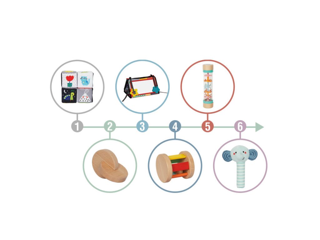 Тази Монтесори кутия XXL 10 бр. Тактилни кубчета Огледало Музикални инструменти Сензорика 3-4 месеца е перфектният помощник за стимулиране на сетивното и моторното развитие на вашето дете на възраст 3-4 месеца, предоставяйки забавление и обучение на всеки етап от растежа му.