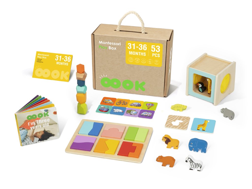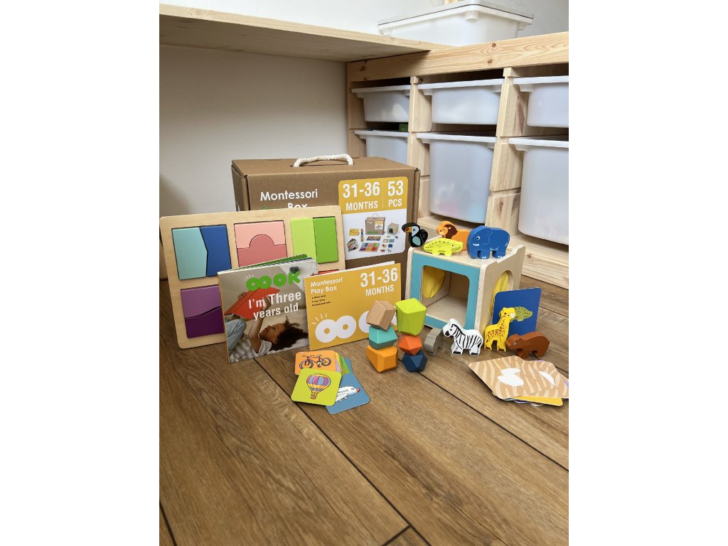За деца от 31 до 36 месеца Montessori кутия XXL 53 части за деца 31-36 месеца е идеалното решение за стимулиране на основните умения. Този комплект съдържа 65 внимателно подбрани играчки, които подпомагат координацията око-ръка, фината моторика и логическото мислене. В набора влизат цветни подреждащи играчки, кубчета с цифри, сензорни карти и други интерактивни елементи. Всички играчки са изработени от качествени, безопасни и екологично чисти материали, които са щадящи към детската кожа.
