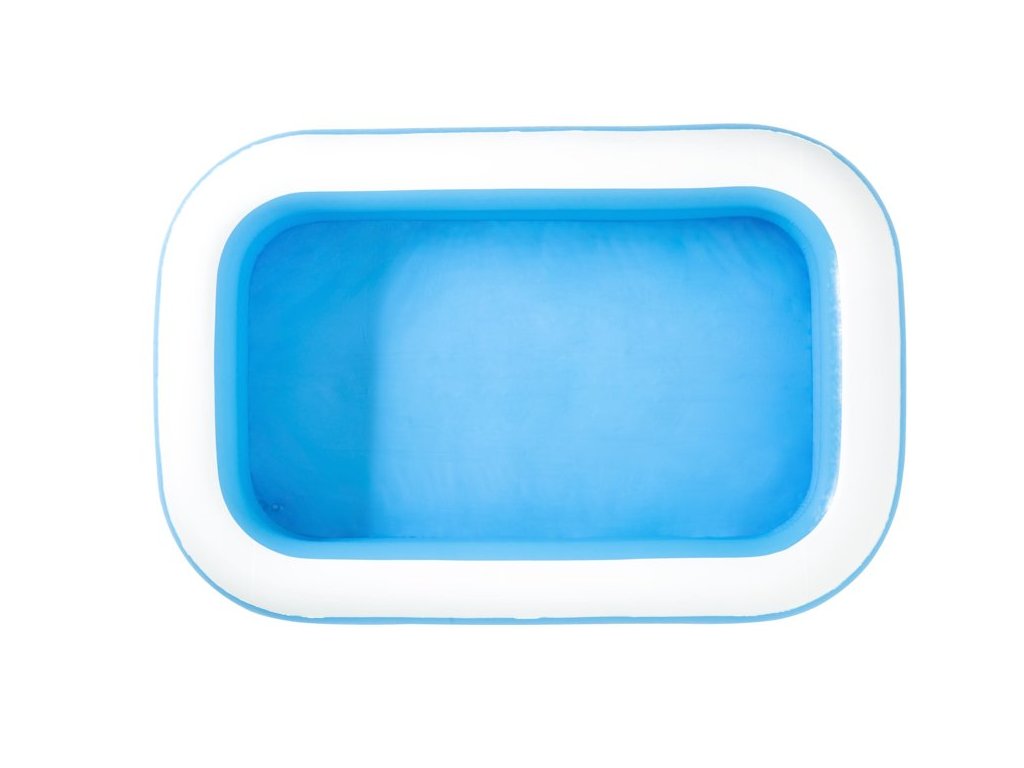 Голям, надежден надуваем басейн за цялото семейство, в който децата могат свободно да плуват. Басейнът е лек, което позволява лесно преместване на мястото с най-топла температура през деня. Лесен за надуване и изпускане на въздух, съхранението му не създава проблем.