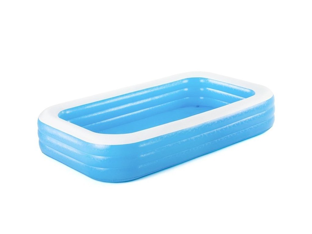 Голям, надежден надуваем басейн за цялото семейство, в който децата могат свободно да плуват. Басейнът е лек, което позволява лесно преместване на мястото с най-топъл климат през деня. Лесно се надува и спуква, като съхранението му не представлява проблем.