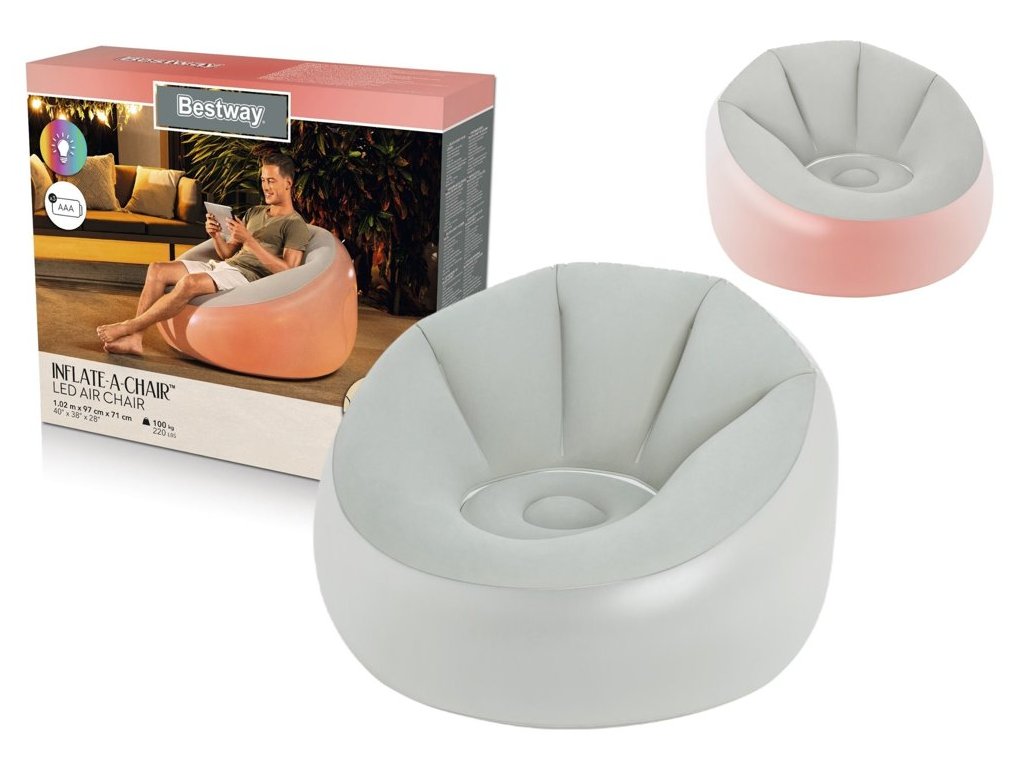 Надуваем фотьойл Bestway със светещи елементи сив е лесен за поддръжка и изисква минимално пространство за съхранение. Дизайнът на фотьойла осигурява максимален комфорт, независимо дали лежите или седите изправени. Освен това е идеален за вътрешна и външна употреба.