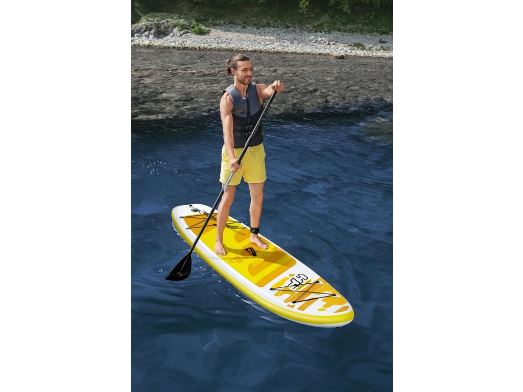 Лекото гребло, включено в комплекта, значително улеснява управлението. Отстраняемото плавниче повишава стабилността при управление и скоростта. Дъската разполага с голяма противохлъзгаща подложка, която помага за поддържане на баланс.