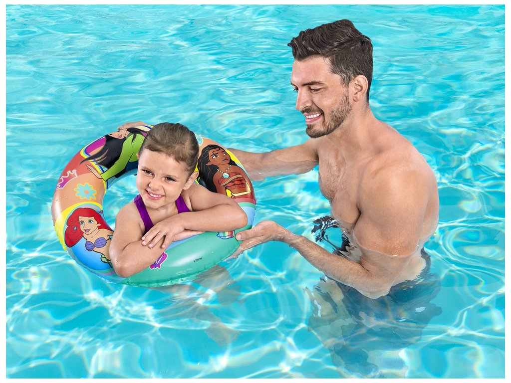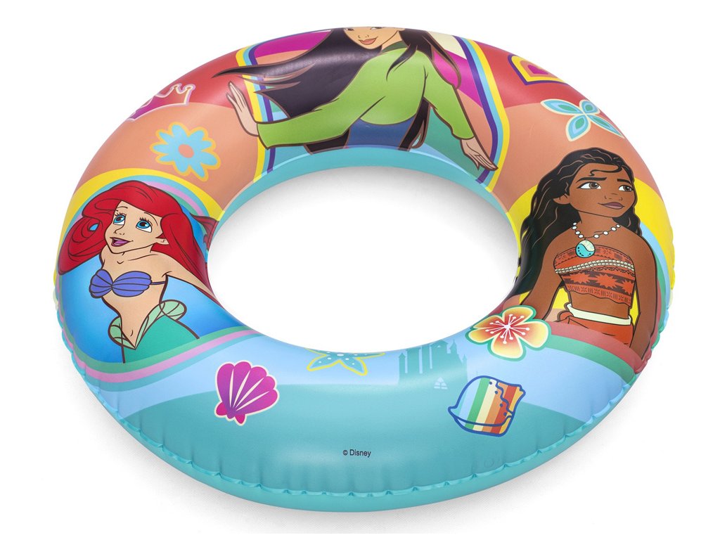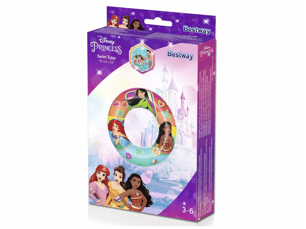 Надуваем пояс за плуване 56 см Принцеса Bestway (модел 91043) е сладък и функционален аксесоар, идеален за малки принцеси, които искат да се радват на летните моменти във водата.