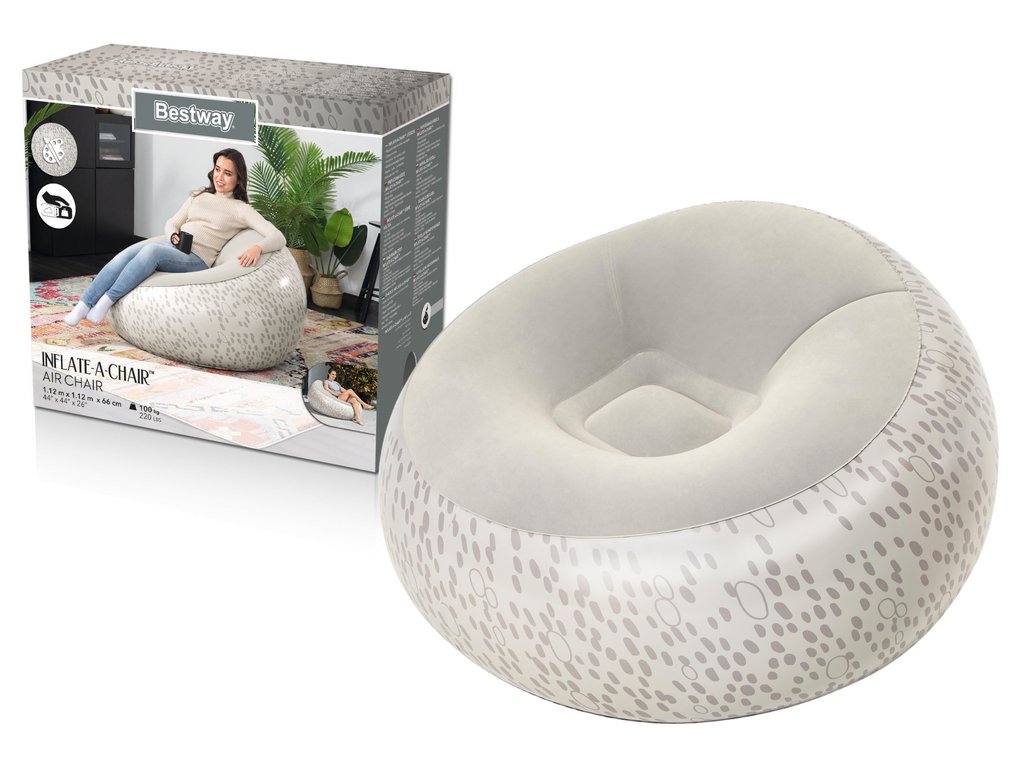 Надуваемият стол Bestway с елегантен принт и ергономична форма представлява перфектната комбинация от комфорт и модерен стил. Идеален избор за почивка у дома, в градината или на терасата.