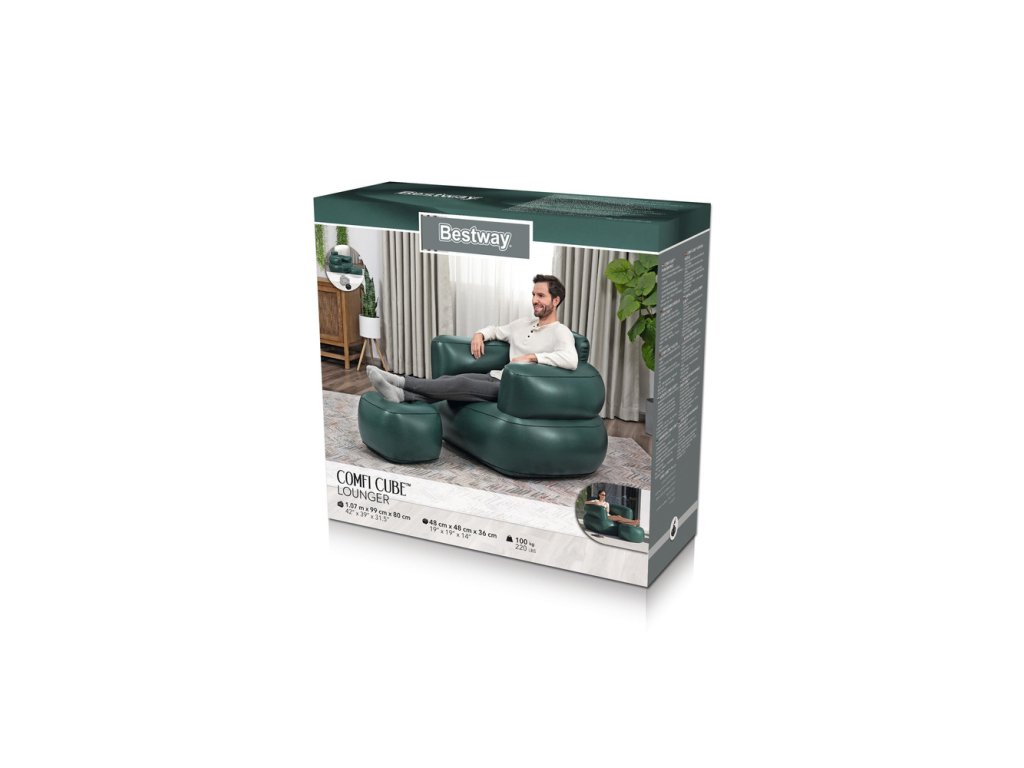 Надуваем стол Bestway 75137 тъмнозелен е удобна и стилна седалка, идеална за вътрешна и външна употреба. Благодарение на ергономичния си дизайн и флокирана повърхност осигурява комфортна почивка, докато здравите материали гарантират издръжливост и комфорт. Изработен е от здраво PVC, което осигурява дълготрайна употреба и удобство при сядане.