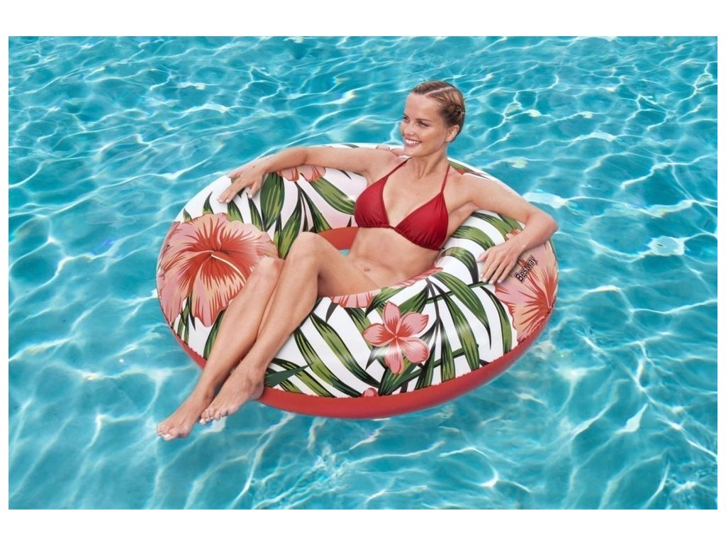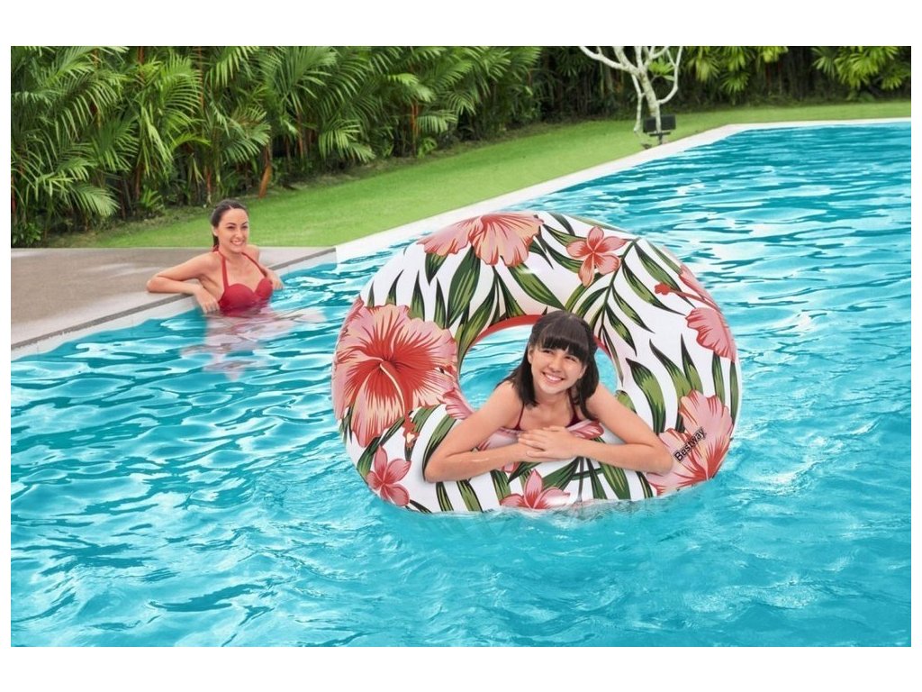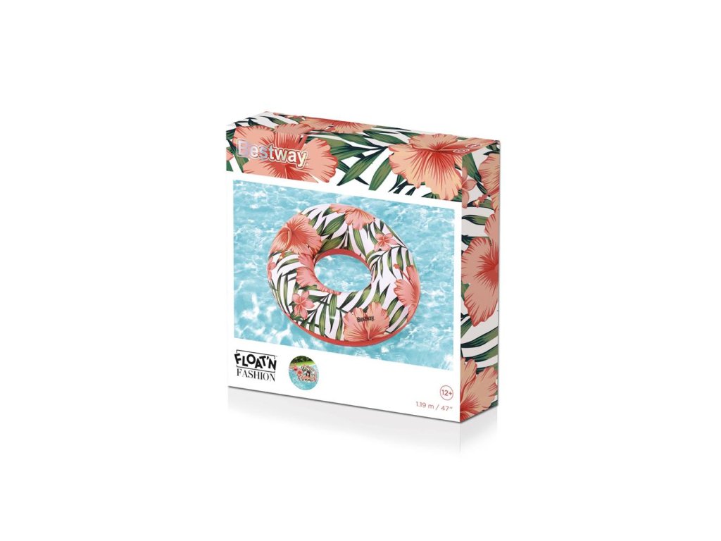 Надуваем воден пояс с цветя 119см Bestway розов има диаметър 119 см. Поясът е предназначен за деца от 12 години и всички възрастни.