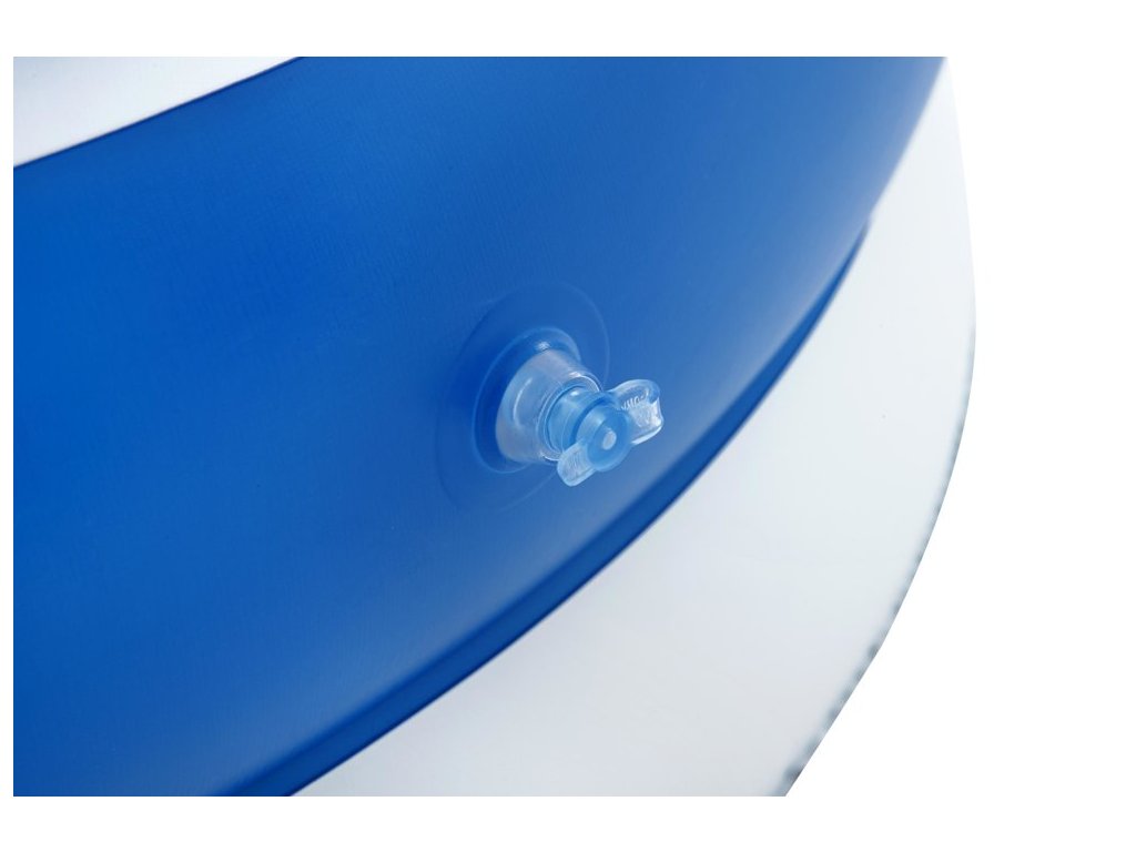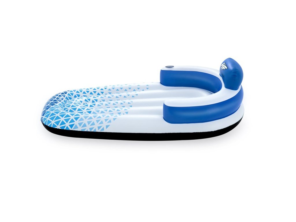Много удобна и практична надуваема дюшека, идеална за всички любители на водата и почивката на плажа. Тя може да се използва както като класическа дюшека за плуване, така и за почивка на слънце. Подлакътниците и надуваемата облегалка за гръб са допълнителни функции, които осигуряват комфорт и релакс. Класическата синьо-бяла цветова комбинация ще ви впечатли. Дюшекът разполага и с отвор за поставяне на чаша, така че няма да се налага да излизате от водата, за да се насладите на любимата си напитка.