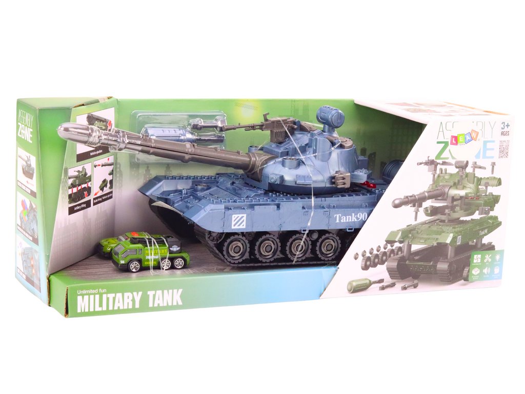 Танкът може да се разглобява с помощта на инструментите, включени в комплекта, което развива техническите умения и ръчната координация на децата. Комплектът съдържа още две малки военни превозни средства, които могат да се вкарат вътре в танка, увеличавайки възможностите за игра и различни игрови сценарии.