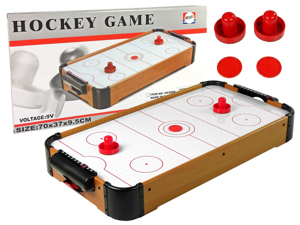 Настолна игра Air Hockey (въздушен хокей) е предназначена за двама играчи. Повърхността на игралната маса е покрита с отвори, през които се издухва въздух, създавайки въздушна възглавница, върху която шайбата се плъзга без допир с повърхността. Въздушният хокей може да се постави върху маса или директно на пода в стаята.