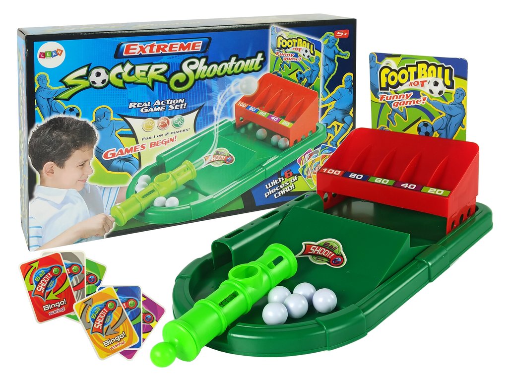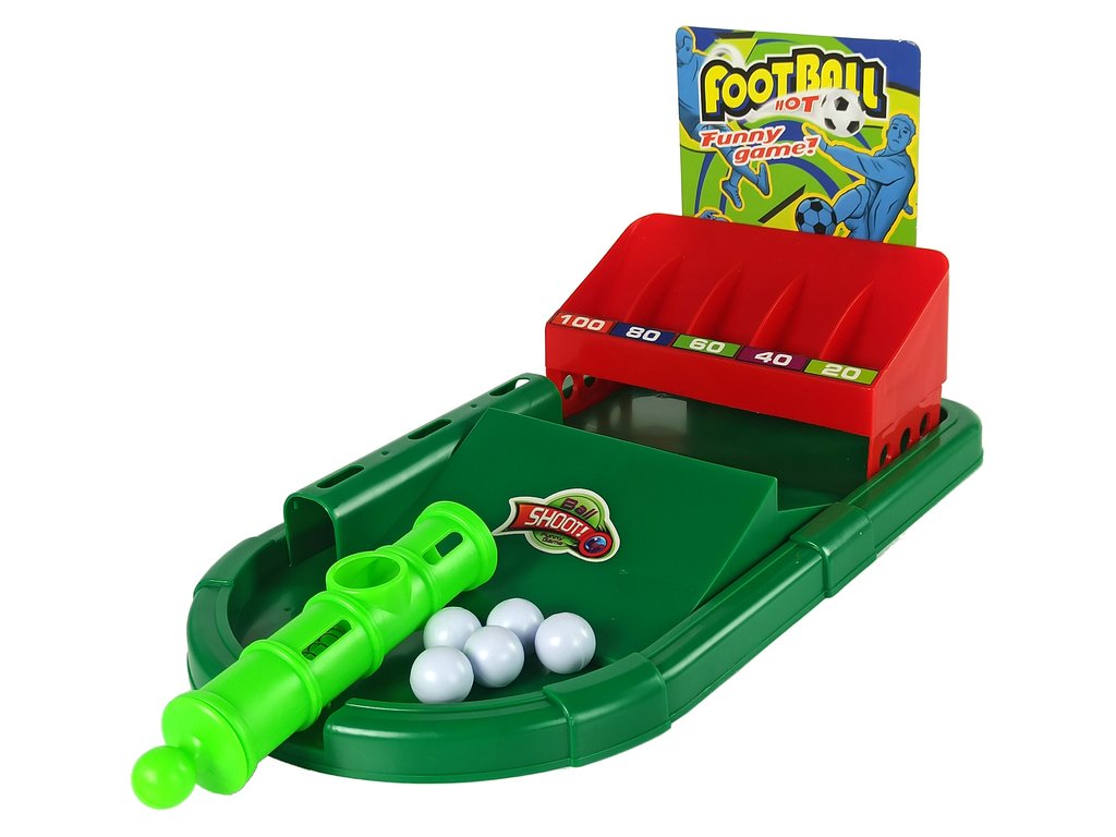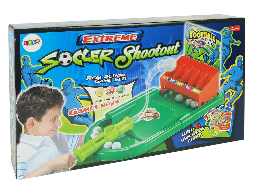 Тази настолна игра футболен сблъсък е много лесна за използване – чрез механизъм за изстрелване играчите могат да стрелят към целите. Играта разполага с 5 врати, върху които са отбелязани точки. Можете да започнете редуваща се игра с връстник или член на семейството. Целете и стреляте! В края печели този, който събере най-много точки.