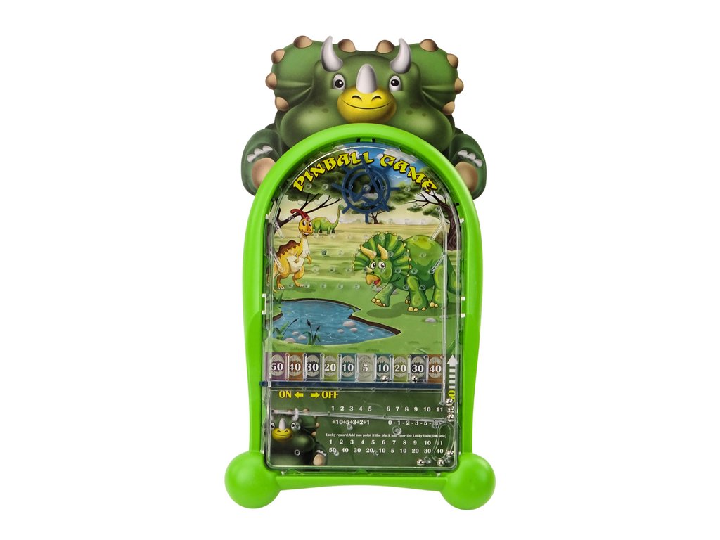 Пинбол игра със зелена стойка и дизайн с динозаври е вълнуваща играчка, която пренася класическата забавна механика в нов, увлекателен свят. Тази игра съчетава традиционния пинбол механизъм с атрактивна визия, изпълнена с дракони и динозаври.