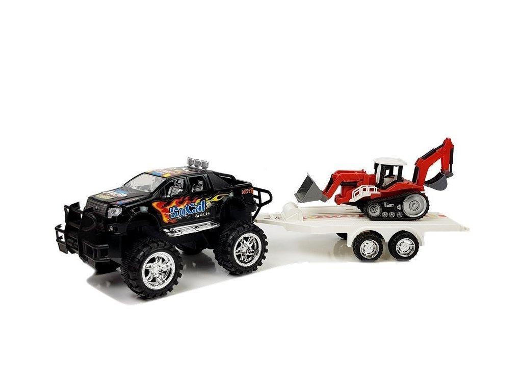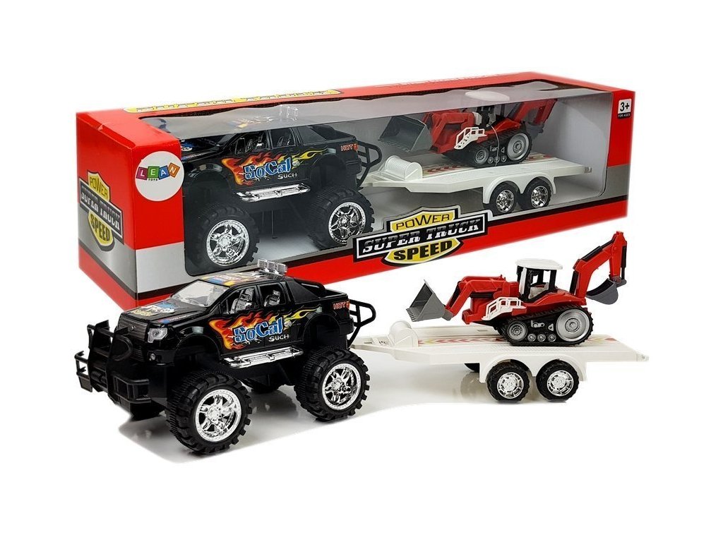 Навиващо джипче с ремарке черно ще осигури на децата много забавление. Джипчето разполага със задвижване с навиване – просто го навийте и пуснете, и наблюдавайте как се движи напред. Ремаркето може да се прикачи към джипчето или всяка част да се използва самостоятелно. Багерът е снабден с лопата и две подвижни кофи.