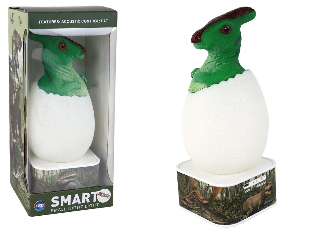 Нашата нощна LED лампа във формата на динозавър, излюпващ се от яйце, ви пренася в завладяващия праисторически свят. Паразауролоф в устойчиво яйце впечатлява с автентичния си дизайн и ни връща в епохата, когато динозаврите царуваха на Земята.