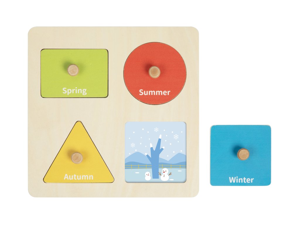 - Прост пъзел, който учи децата да разпознават четирите сезона чрез цветни илюстрации.